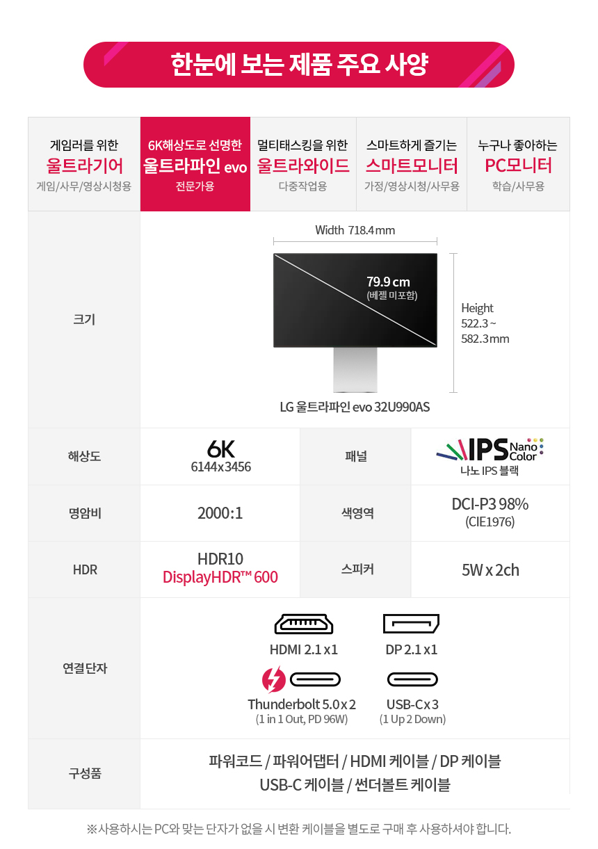 LG 울트라파인 evo 32U990AS 나노IPS블랙 6K 썬더볼트5 2000:1 HDR600 전문가용