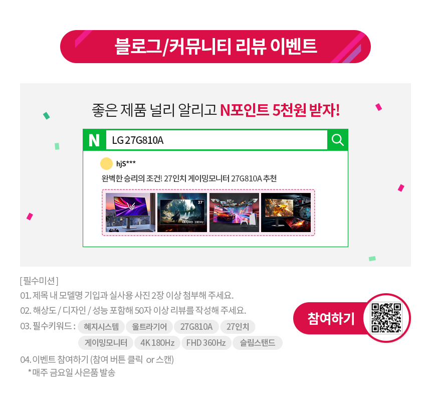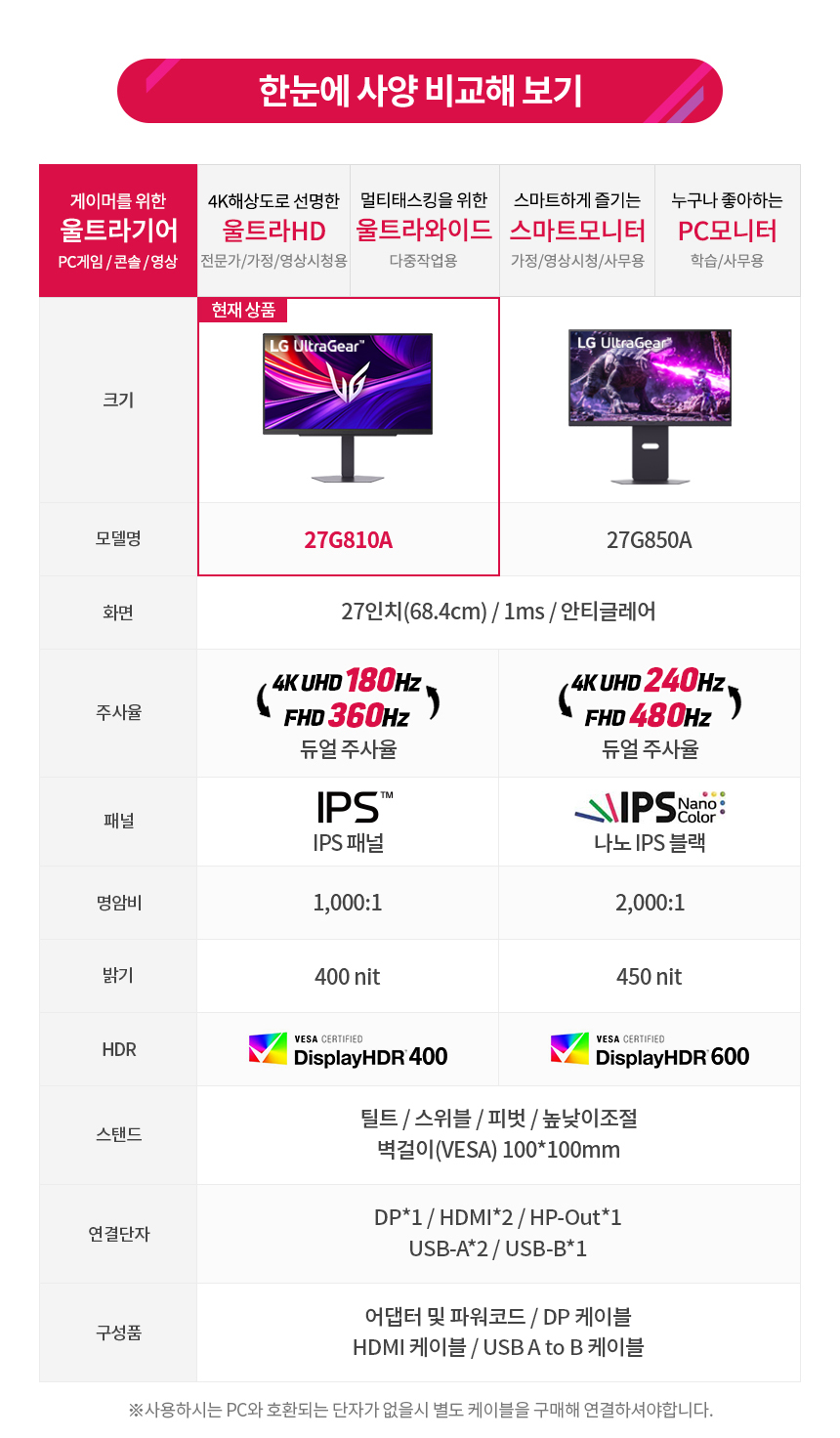 LG 울트라기어 27G810A 27인치 IPS 4K UHD 180Hz FHD 360Hz 1ms 게이밍 모니터